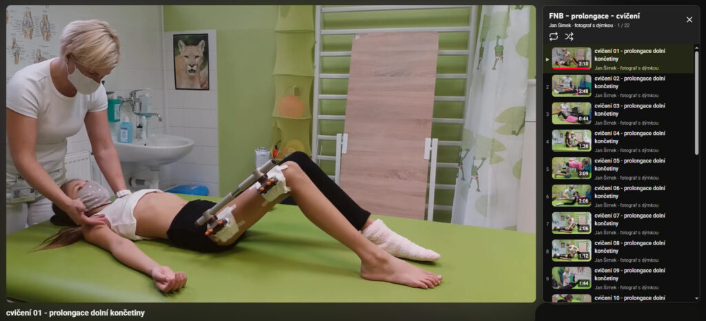Dětská nemocnice FN Brno – rehabilitační instruktážní cvičební video po prolongaci končetiny.